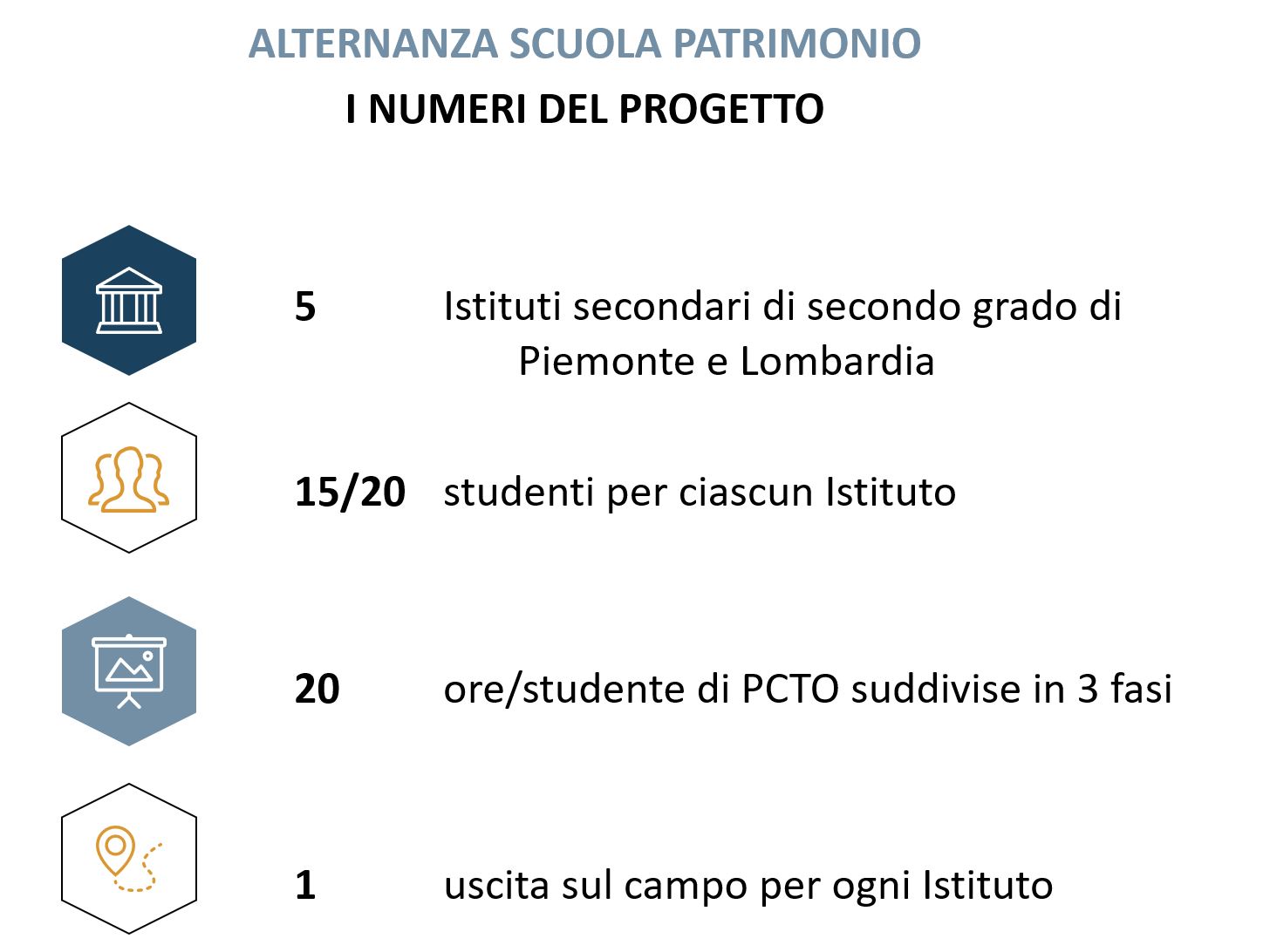 ALTERNANZA SCUOLA PATRIMONIO ha costruito, fra il 2019 e il 2021, con gli Istituti coinvolti nei territori dei Sacri Monti di Piemonte e Lombardia, un Percorso per le competenze trasversali e per l’orientamento-PCTO, introducendo i ragazzi alla conoscenza del paesaggio culturale del Sacri Monti e delle professioni nel campo della tutela, conservazione e valorizzazione del patrimonio artistico e paesaggistico, sperimentare modalità di didattica innovativa learnig by doing coniugate con l’uso di tecnologie digitali avanzate (ICT-AR/VR) per la conoscenza e la comunicazione del patrimonio culturale, sviluppate con la collaborazione del Cultural Landscape Information and Planning Lab-CLIP del Dipartimento di Architettura a Studi Urbani del Politecnico di Milano.